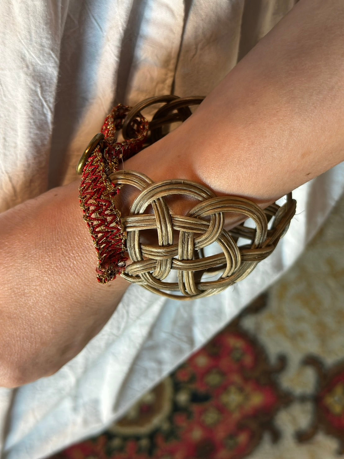 1920~1940年代にフランスで木綿や麻、羊毛、絹などの素材を使用してグランメゾンの為作られたブレードのサンプル見本のデットストックを使用して、それぞれ一点もののブレスレットを製作致しました。